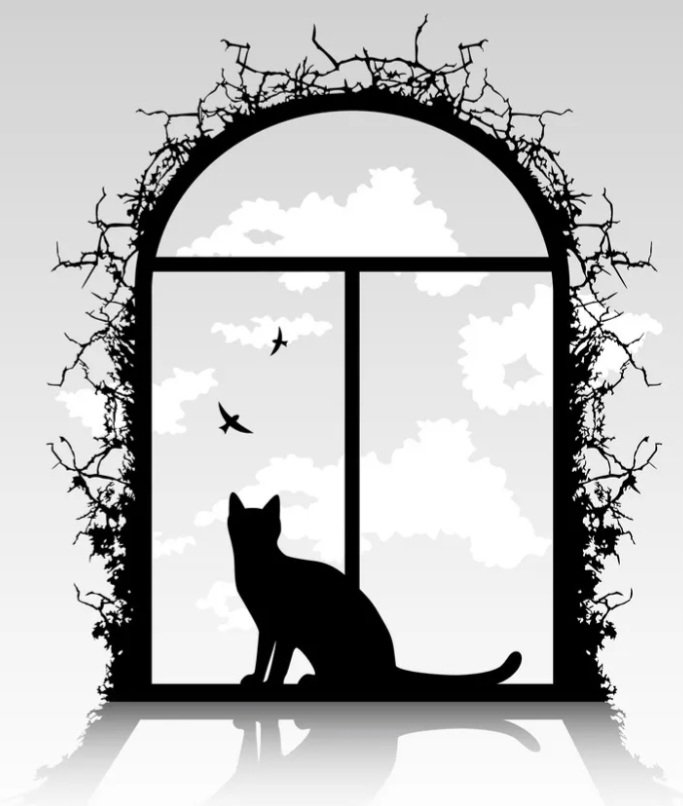 Picture from VectorStock https://www.vectorstock.com/royalty-free-vector/cat-silhouette-in-the-window-vector-4720427
